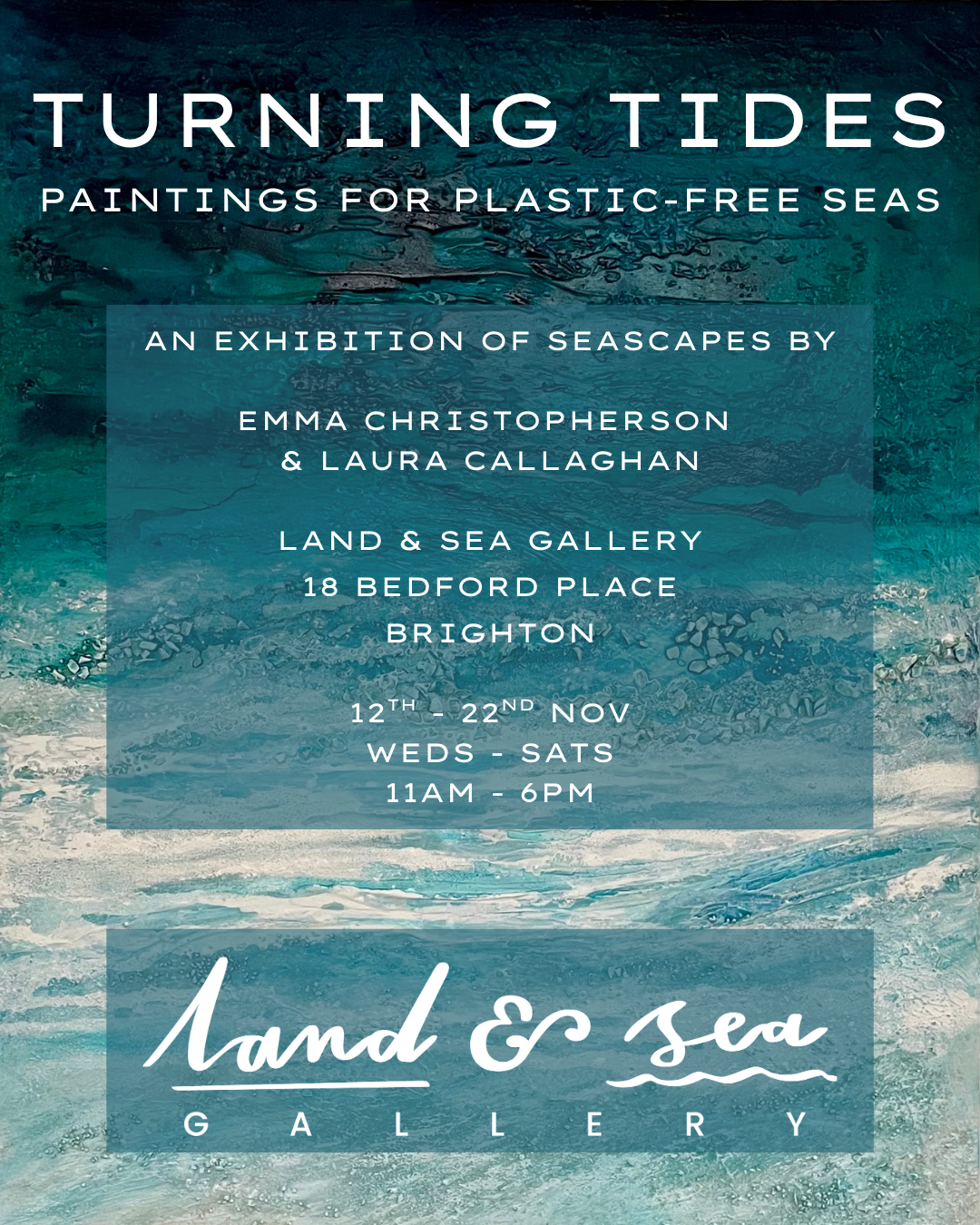 Our joint exhibition, Turning Tides: Paintings for Plastic-Free Seas, celebrates our shared love of the ocean — its calm, power and beauty — while also highlighting the urgent need to protect it from plastic pollution. Many of the pieces even incorporate reclaimed materials found on local beaches.